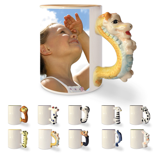 Tazza bianca con manico a forma di animale